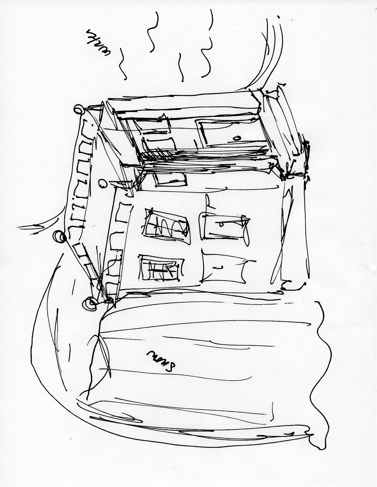 The second dream seems to be a great deal about being in “head”. M, who I associate with “head” and intellect is on the top of a snowy hill. Attached to this hill is a brick mansion, which is very male (or Patriarchal) to me. I was trying to figure out the era of architecture of this mansion and I found myself searching for images of City Hall buildings and Banks. I fear going up into the attic of this mansion (head) for it is haunted and hostile. Then when I am out on the roof, in the “spirit” realm, there is a male (animus) figure, a driver (one who takes me wherever I need to go) and he has no head! He is completely capable and, yet, has no head. This man is friendly and definitely on my side in the dream. We almost have a little secret of knowing between us; a different kind of knowing.